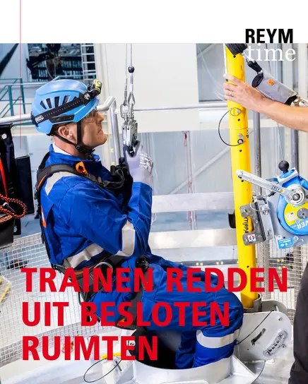 REYM hecht veel waarde aan veilig werken. Dat betekent dat medewerkers goed opgeleid worden én regelmatig hun kennis verversen. Bijvoorbeeld in de training ‘redden uit besloten ruimtes’, waarvoor REYM samenwerkt met EUROSAFE. “Als er iets misgaat, wil je meteen kunnen handelen.”