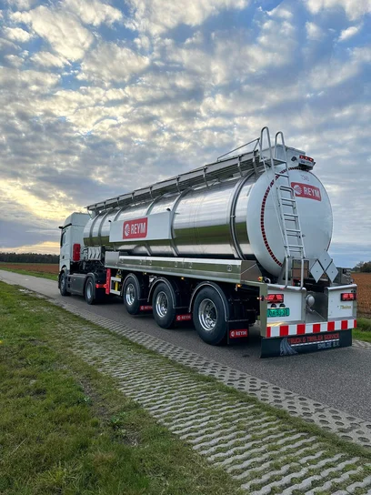 De tankoplegger wordt voortgetrokken door een Mercedes-Benz Actros L Procabin 4x2 met hydrauliek. Dit is inmiddels de derde nieuwe unit binnen REYM die volgens het nieuwste Mercedes-Benz design is uitgevoerd. De trekker beschikt over alle actuele veiligheidssystemen en voldoet volledig aan de meest recente REYM-specificaties.